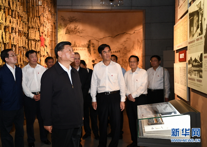5月20日至22日,中共中央总书记、国家主席、中央军委主席习近平在江西考察,主持召开推动中部地区崛起工作座谈会并发表重要讲话。这是习近平在赣州市于都县中央红军长征出发纪念馆参观,听取有关中央红军长征集结出发历史情况介绍。 新华社记者 谢环驰 摄 党的十八大以来,从滹沱河畔到宝塔山上,从遵义古城到沂蒙老区,习近平总书记的“红色足迹”遍及各个革命老区。 历史是最好的教科书,中国革命历史是中国共产党人永不枯竭的精神源泉。 “每到井冈山、延安、西柏坡等革命圣地,都是一种精神上、思想上的洗礼。”习近平总书记常说,“多重温这些伟大历史,心中就会增加很多正能量。” 在中央红军长征出发纪念馆一层,习近平总书记亲切会见了于都县的红军后代、革命烈士家属代表。 张复信,父亲一辈有8人参加红军,全部牺牲;段桂秀,丈夫王金长1932年参加红军,1934年牺牲;李灿美,红军战士李晋录的遗腹子…… 习近平同大家一一握手,询问他们身体如何、生活上还有什么困难。 望着几位老人,总书记动情地说:“你们的前辈都牺牲了,我们要记住他们。记住他们,最重要的就是不忘初心,继续高举这面革命的旗帜向前走,将来我们的后代也要继续往前走,奋力实现‘两个一百年’奋斗目标、实现中华民族伟大复兴的中国梦。” 他特别叮嘱大家:“现在国家发展了,人民生活好了,一定要饮水思源,不要忘了革命先烈,不要忘了中央苏区的老百姓们。各级党委和政府要关心照顾好为中国革命作出贡献的老红军、老同志以及红军后代、革命烈士家属。” 绝处逢生,凭的是什么? 革命胜利,靠的是什么? 继续前进,需要什么?