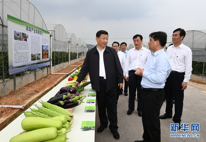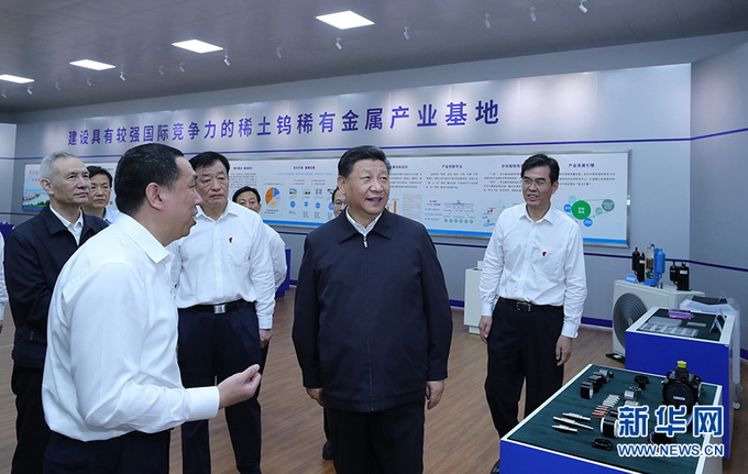 5月20日至22日,中共中央总书记、国家主席、中央军委主席习近平在江西考察,主持召开推动中部地区崛起工作座谈会并发表重要讲话。这是习近平在赣州市于都县梓山富硒蔬菜产业园考察调研。 新华社记者 谢环驰 摄 “中部地区崛起势头正劲,中部地区发展大有可为” 铭记历史,是为了继续前行。创新发展,才能再创辉煌。 包括江西在内的中部六省,地处中原腹地,九省通衢。这片孕育过华夏文明的古老土地,能否谱写出一曲新时代高质量发展的壮丽华章,对实现全面建成小康社会奋斗目标、开启我国社会主义现代化建设新征程具有十分重要的意义。 党的十八大以来,以习近平同志为核心的党中央,深入实施区域协调发展战略,区域空间结构不断优化,资源配置效率全面提高,为经济高质量发展注入澎湃动力。 特别是近一年多来,习近平总书记接连调研湖南湖北、东北三省和京津冀,先后主持召开深入推动长江经济带发展座谈会、深入推进东北振兴座谈会和京津冀协同发展座谈会,并推动粤港澳、长三角发展,推进西部大开发形成新格局,精心谋划、扎实推动区域协调发展战略向着更加均衡、更高层次、更高质量方向迈进。 这一次,推动中部地区崛起的重大课题,列入了总书记的考察日程表。 在推动中部地区崛起工作座谈会上,中部六省负责同志不约而同谈到了创新发展、绿色发展的重要理念,而这也正是习近平总书记此次调研的重点之一。 位于赣州市的江西金力永磁科技股份有限公司是一家从事稀土永磁铁研发、生产和销售的企业,年产能达到1万吨。20日中午,习近平从北京乘机抵达赣州,首先考察了这家企业。 在企业展厅、生产车间,习近平详细了解企业加大科研投入、致力科技创新、注重生态修复的情况。 企业负责人告诉总书记,将近60%的电能是被电机消耗掉的,而稀土永磁电机比传统电机节能25%以上。如果全国的空调都换成稀土永磁电机,一年可以节约一个三峡电站的发电量。 稀土的应用可以降低能耗,但稀土的开采又很容易破坏环境。