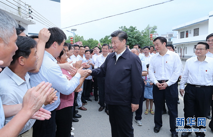 5月20日至22日,中共中央总书记、国家主席、中央军委主席习近平在江西考察,主持召开推动中部地区崛起工作座谈会并发表重要讲话。这是习近平在红军烈士后代、退伍军人孙观发家,同孙观发一家和当地镇、村干部拉家常,详细了解老区人民生产发展和生活改善等情况。 新华社记者 谢环驰 摄 “岢岚县赵家洼村整村搬迁后,老百姓就业有没有着落?” “金寨县什么时候能脱贫摘帽?” 在推动中部地区崛起工作座谈会上,习近平总书记多次插话,向有关中部省份负责同志,询问他考察过的贫困地区脱贫攻坚进展情况,关切之情溢于言表。 在谈到做好中部地区民生领域重点工作时,他特别强调,脱贫攻坚已经进入决胜的关键阶段。今明两年各地区各部门要把做好脱贫攻坚工作作为重中之重,着力解决好“两不愁三保障”突出问题,让老区人民早日过上幸福生活! 于都县梓山镇潭头村,一个有着700多年历史的赣南小村落。 村间小路绿树成荫,清渠净水汇入一方方池塘,白粉墙上一幅幅吉祥喜庆的民间彩绘格外喜人。