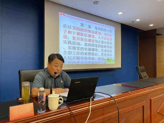 ![]() 读书班在组织学员充分学习原文的基础上,邀请市委党史学习教育宣讲团成员、中共天津市委党校副校长、天津行政学院副院长徐中同志围绕“学习领会习近平总书记‘七一’重要讲话精神”作专题辅导解读。在党建课堂中,中共天津市委党校教授张颖春、副教授井建斌同志分别以“历史关键时刻的中国共产党”“解读《中国共产党组织工作条例》”为题作专题讲授。 交流座谈“互学”提动力 召开“请党放心 强国有我”系统党员学习贯彻习近平总书记“七一”重要讲话精神座谈会,为荣获市级和市级机关“两优一先”的党组织和个人颁授荣誉,组织系统党员代表交流学习体会。 ![]() 读书班开展专题研讨会,党员干部围绕习近平总书记“七一”重要讲话精神谈认识、谈体会、谈感悟,交流学习心得。 ![]()