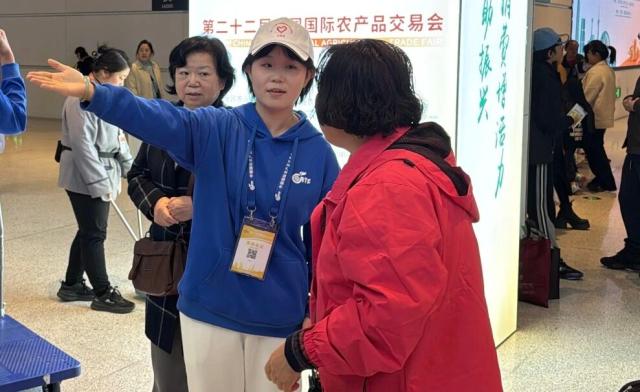 团市委组织天津外国语大学、天津农学院123名青年志愿者在场站迎送、语言翻译、场馆指引、展位介绍等岗位展开服务,为保障农交会的顺利举行贡献青春力量。