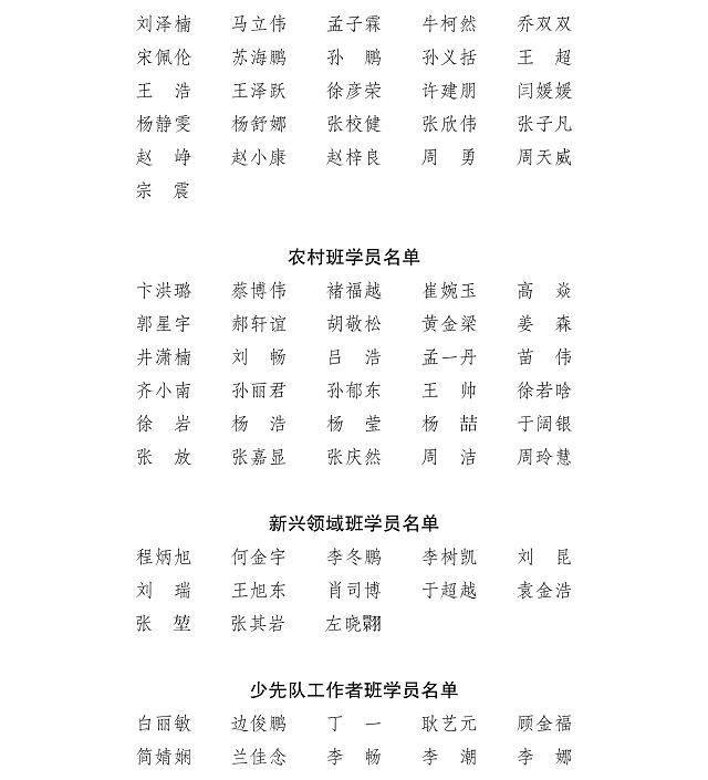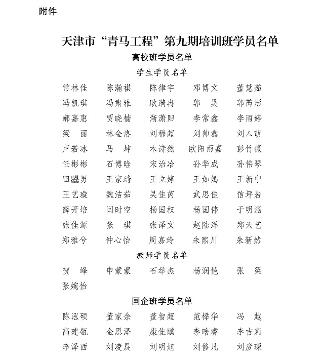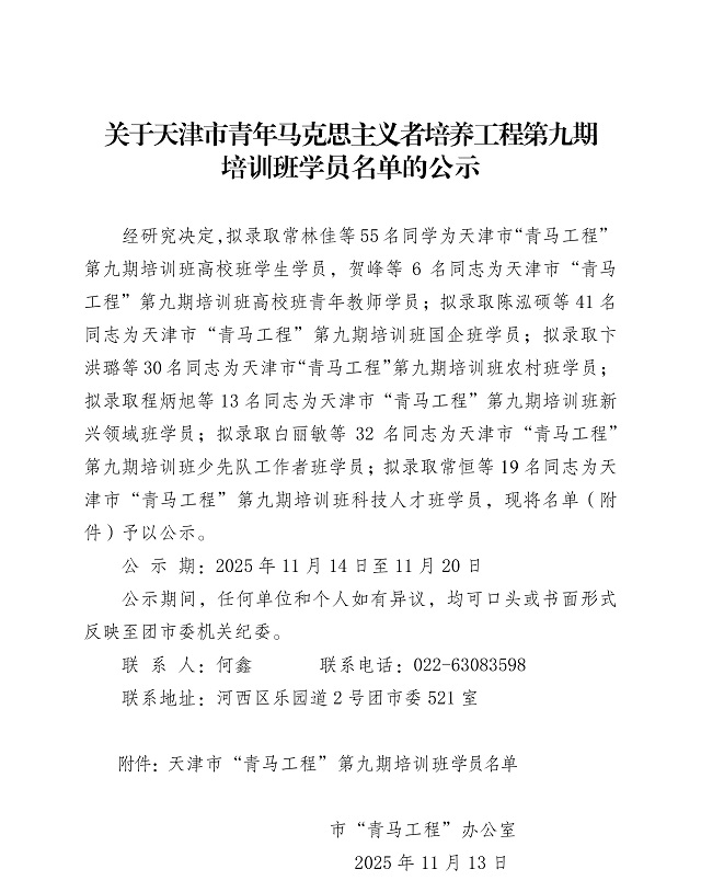 关于天津市青年马克思主义者培养工程第九期培训班学员名单的公示