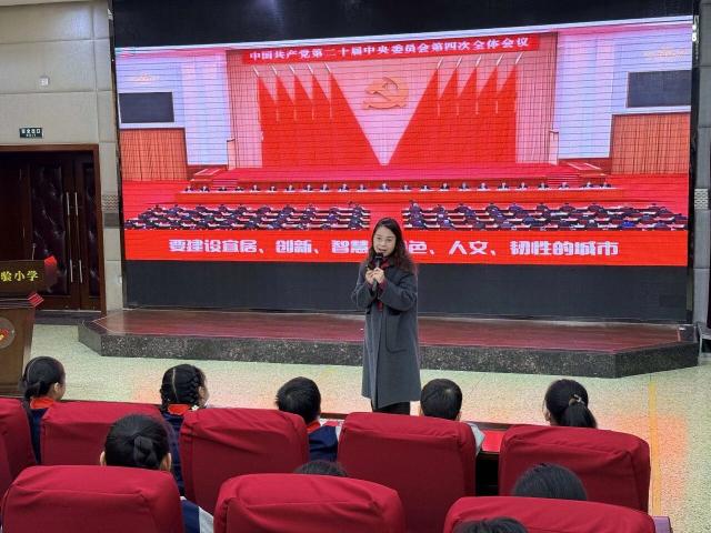 全国红领巾巡讲团成员、河北省邯郸市复兴区第二实验小学大队辅导员李紫叶以《“中国建造”的超棒“成绩单”》为题,为队员们讲述了“十四五”期间“雄安新区”等城市建设成就,感悟中国制度的巨大优势,引导队员们将国家“十五五”规划与个人成长相结合,努力成长为祖国需要的栋梁之材。