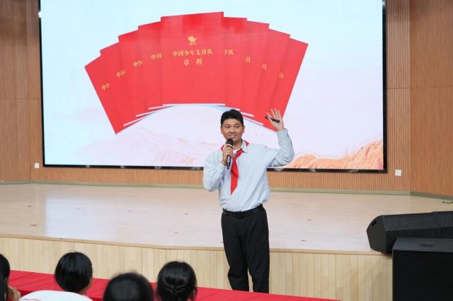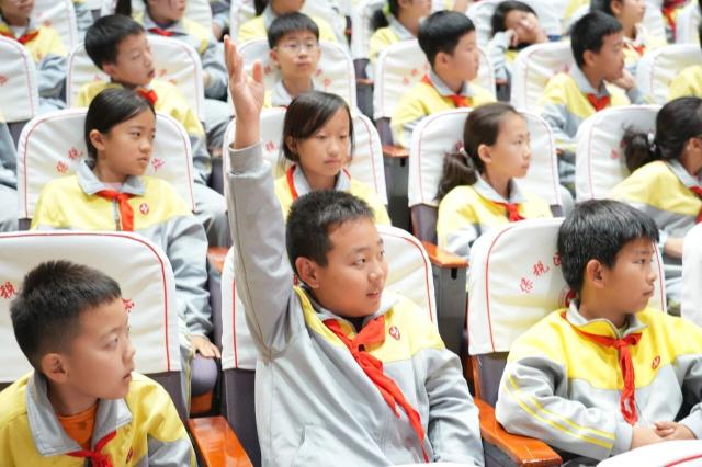 全国红领巾巡讲团成员、天津市河东区实验小学大队辅导员窦悦辉以《闪耀在黄土地上的青春之光》为题,为队员们讲述习近平总书记在梁家河插队的七年知青岁月,通过 “与书为伴的求知时光”“不惧艰辛的劳动场景”“心系群众的为民行动”等具象化故事,激励队员们传承奋斗精神。