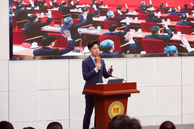 天津市青年讲师团成员、中共天津市委党校教师刘学以《“十五五”时期经济社会发展谋划》为题开展宣讲,他从理论层面系统解读规划部署与国家战略逻辑,阐释高质量发展、科技自立自强等核心任务,助力青年深化思想认知、明晰时代使命。