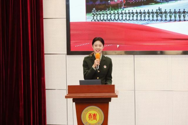 天津市学联宣讲团成员、南开大学学生康蓓君以《青春在使命中绽放》为题作分享,她结合亲身参与阅兵的宝贵经历,满含荣光地从爱国之基、爱国之魂、爱国之路三个维度,生动诠释新时代青年炽热的爱国情怀,深刻呼应“十五五”规划的强军目标与时代号召。