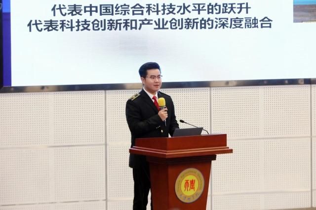 天津市学联宣讲团成员、中国民航大学学生石博晗以《从“跟跑”到“领跑”——谈高水平科技自立自强》为题作分享,他结合民航领域科技创新的发展历程与典型案例,深入剖析我国科技发展从追赶到引领的跨越之路,呼吁广大青年投身科技强国建设浪潮,以青春之力助推高水平科技自立自强。