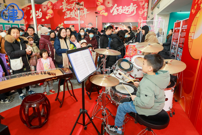 1月24日上午,天津青少年活动中心人山人海、童声童语、锣鼓喧天、欢腾一片,天津市第十七届娃娃庙会在此热闹开街。