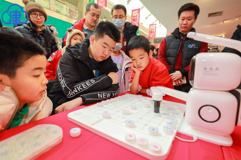 科技为庙会增添新趣味。一名小朋友正与机器人下象棋,吸引了不少人围观。机器人编程、3D打印手作、无人机挑战等科技项目,让孩子们在玩乐中接触前沿科技,体验别样年味。