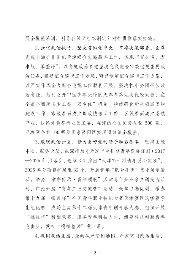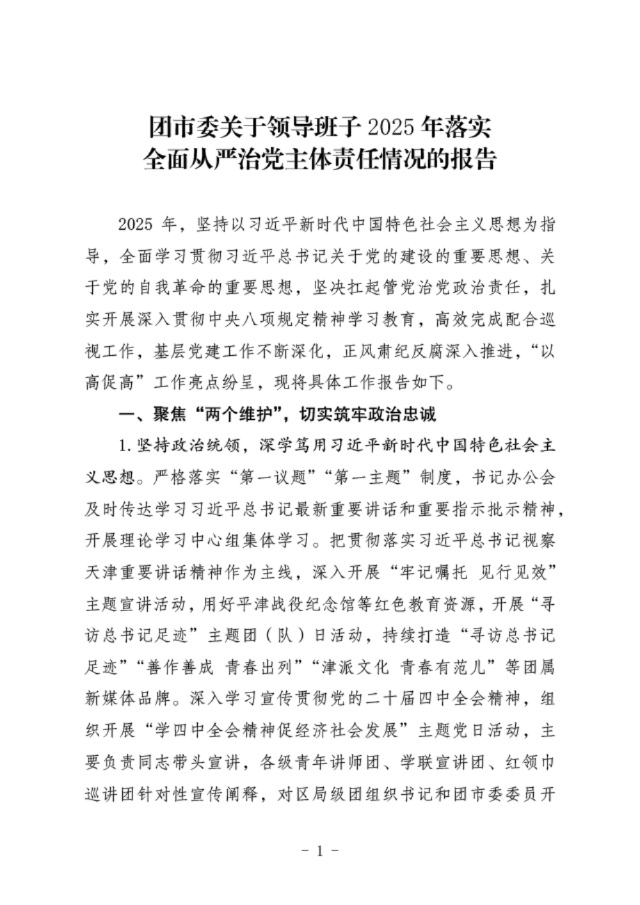 团市委关于领导班子2025年落实全面从严治党主体责任的报告